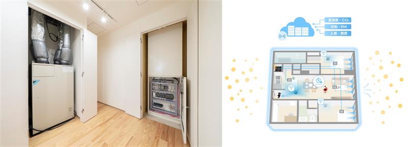 - また、設置した各種センサーと連動するエアコンや換気機器、空気清浄機で構成した空調・換気システムを構築し、住民からのフィードバックも活用しながら、花粉の侵入を抑え、室内の花粉をより除去できる空調・換気システム運用方法を探ります。