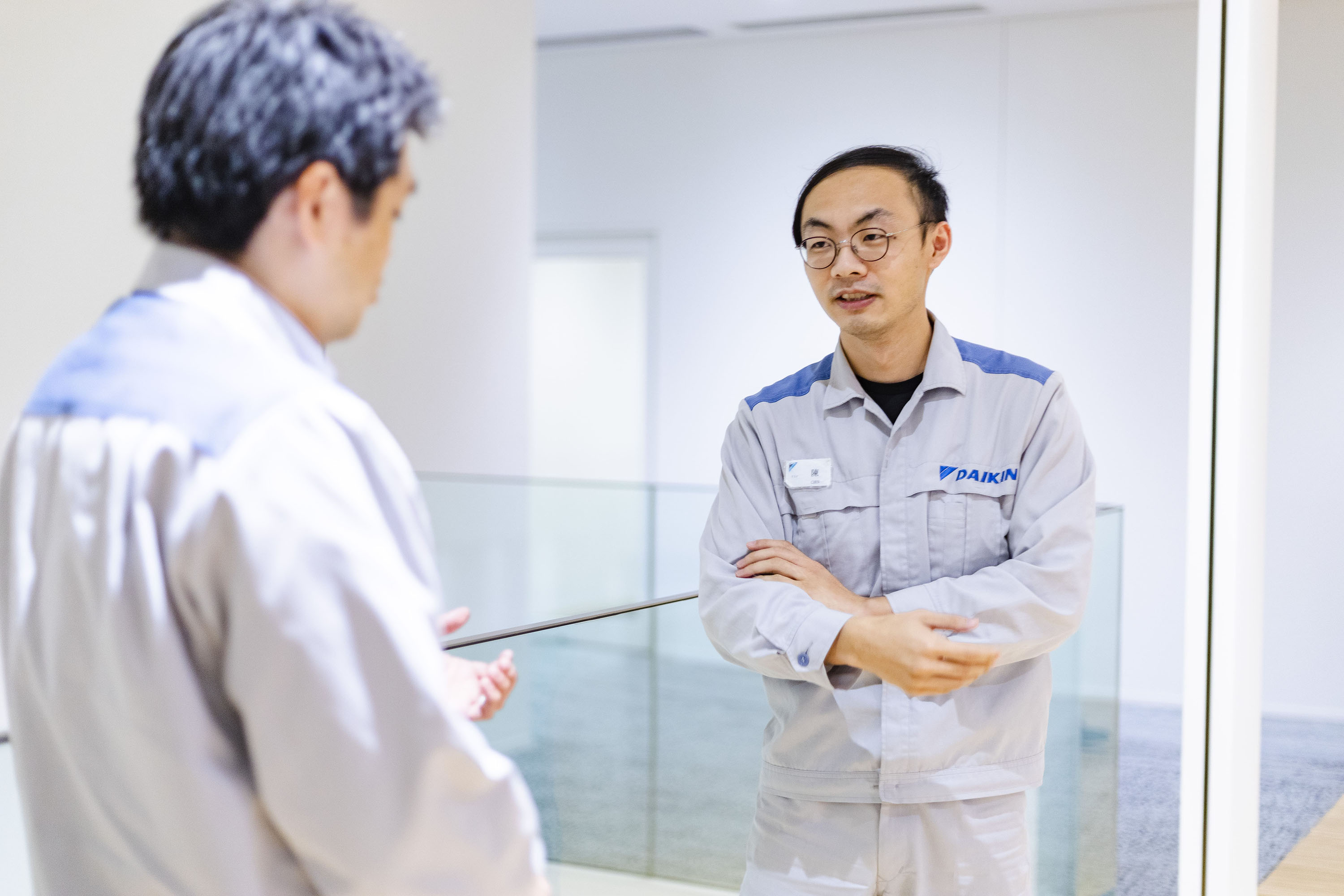- 私個人としては、ものづくりが好きでダイキンに入ったので、自分が携わったプロジェクトで生み出した製品が世の中で使われているのを目の当たりにすると「また次も頑張ろう」と充実感に満たされます。このプロジェクトでも、ベルギーに長期出張して毎日ディスカッションを重ね、新たな商品コンセプトを立案しました。それが形になった時には、きっと大きなやりがいを感じられると思います。チームで想いを結集させて一つの製品をつくり上げ、社会に貢献できることは、他の何事にもかえがたい喜びです。