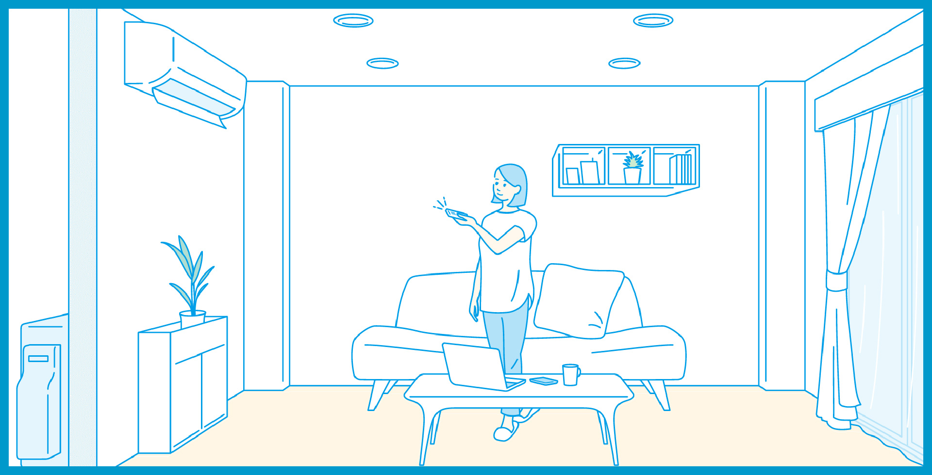 エアコンをつけると、部屋の空気から「熱」がどんどんなくなっていくから、すずしくなるんだ。