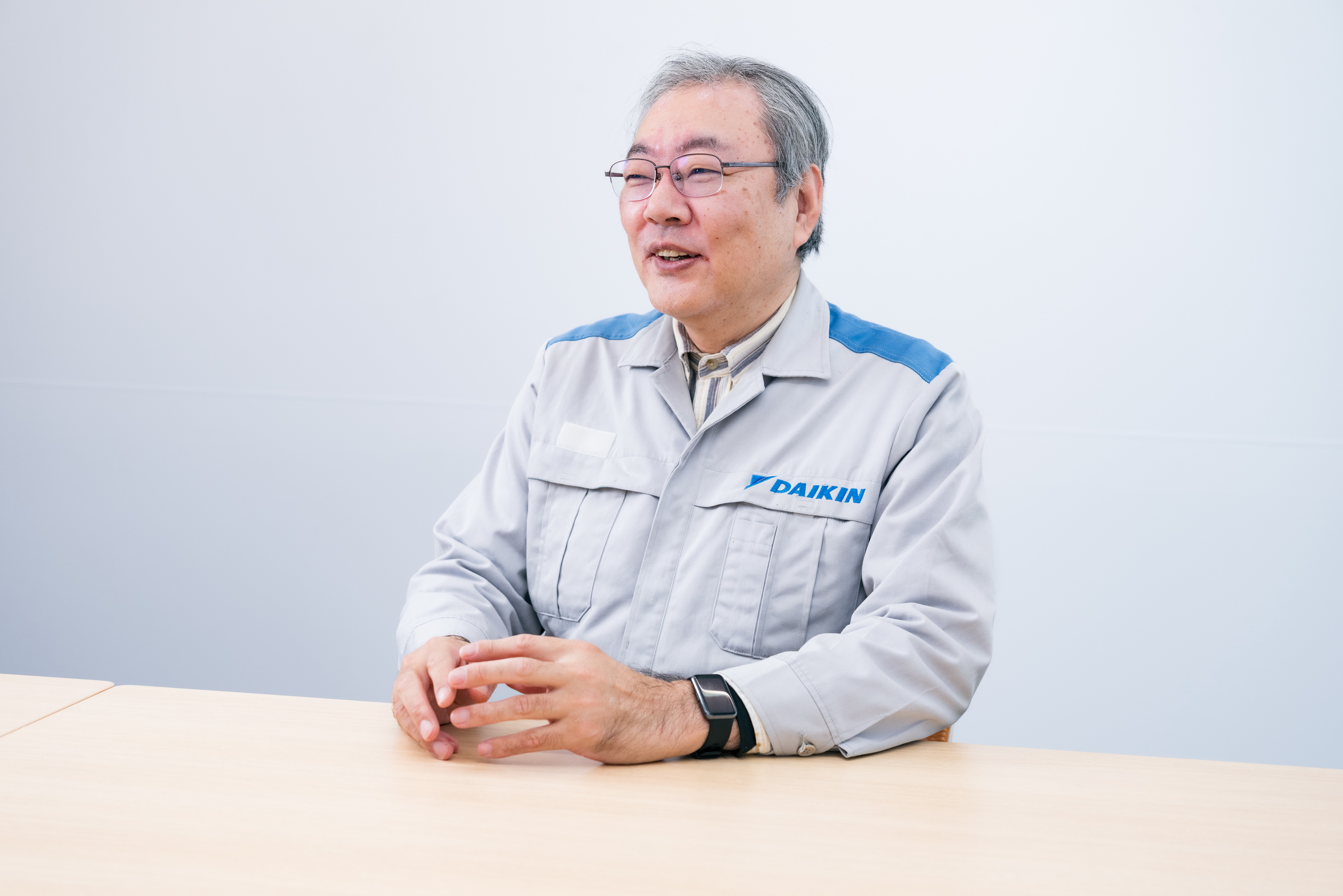 乾:私は化学畑の出身でフッ素樹脂の素材開発から始まり、いまは特許の窓口業務を行っています。ダイキンは技術者が本当に幅広い分野で活躍できる場があります。今後はフッ素樹脂だけでなく、いろいろな高性能素材を開発してもらいたいですね。これから半導体関連分野も伸びてくると予想されるため、最先端技術を支える土台として期待できるでしょう。