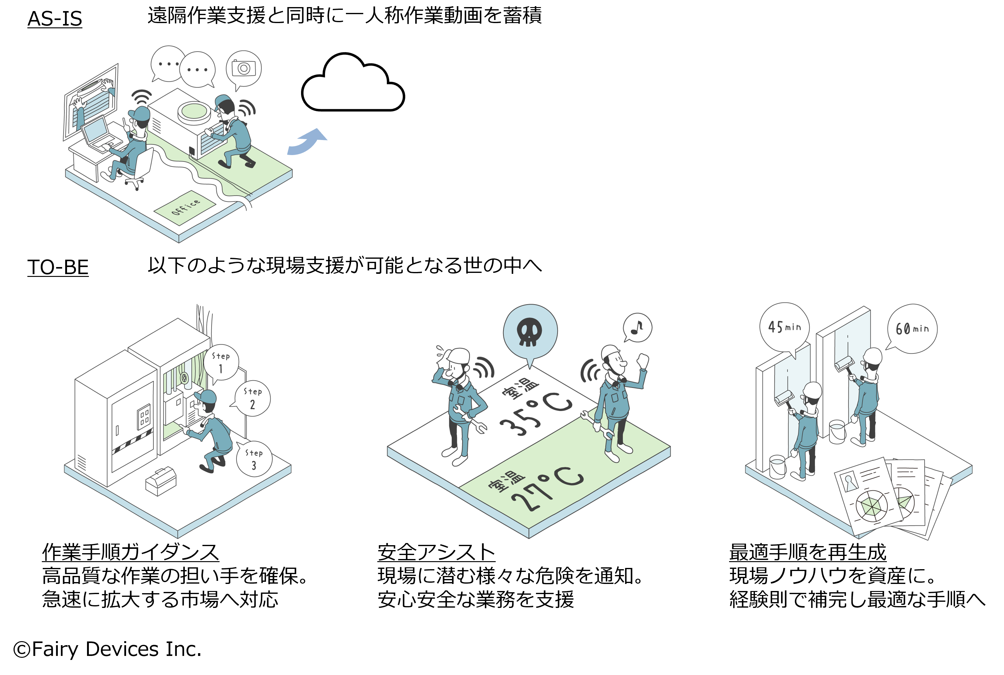 比戸:そうですね。一人称動画解析が盛り上がってきている今だからこそ、例えば我々の動画データの一部を公開することで、世界のトップ研究者の知見を取り込んで、オープンイノベーションで課題を解決していくことも考えられます。ダイキンの取り組みが、あらゆる産業で使えるグローバルスタンダードになるといいですね。空調以外の分野では競合しないので、フェアリーさんと共に、いろいろな分野で横展開することも可能だと思っています。