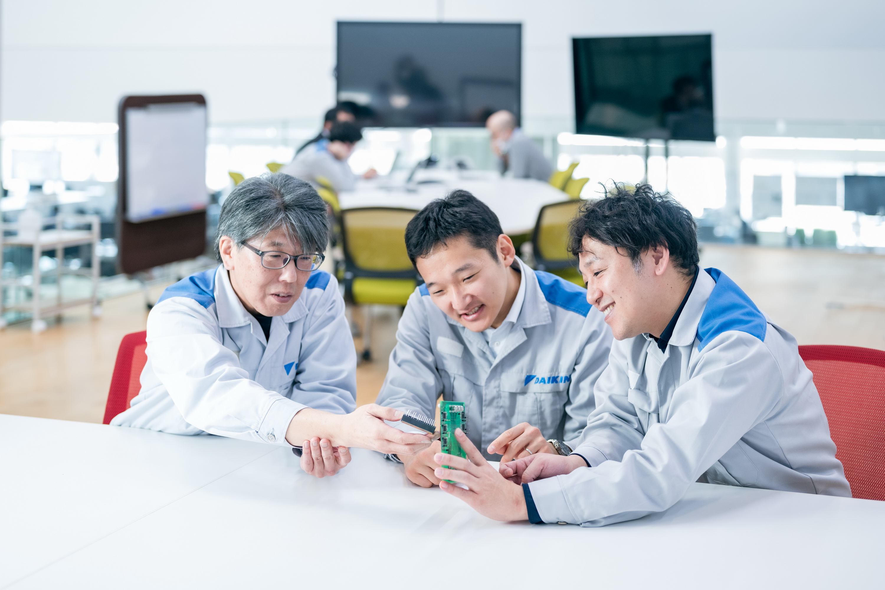 堀之内:汎用品では実現できない機能を組込んだカスタム半導体を開発すれば、他社との明確な差別化が可能になります。空調機へのカスタム半導体導入はまだ一般的ではありませんが、自動車や産業機械では既に活用が進んでいます。半導体を自社開発することで内部構造や動作を深く理解し、半導体メーカーと対等に議論できるようになれればと思っています。