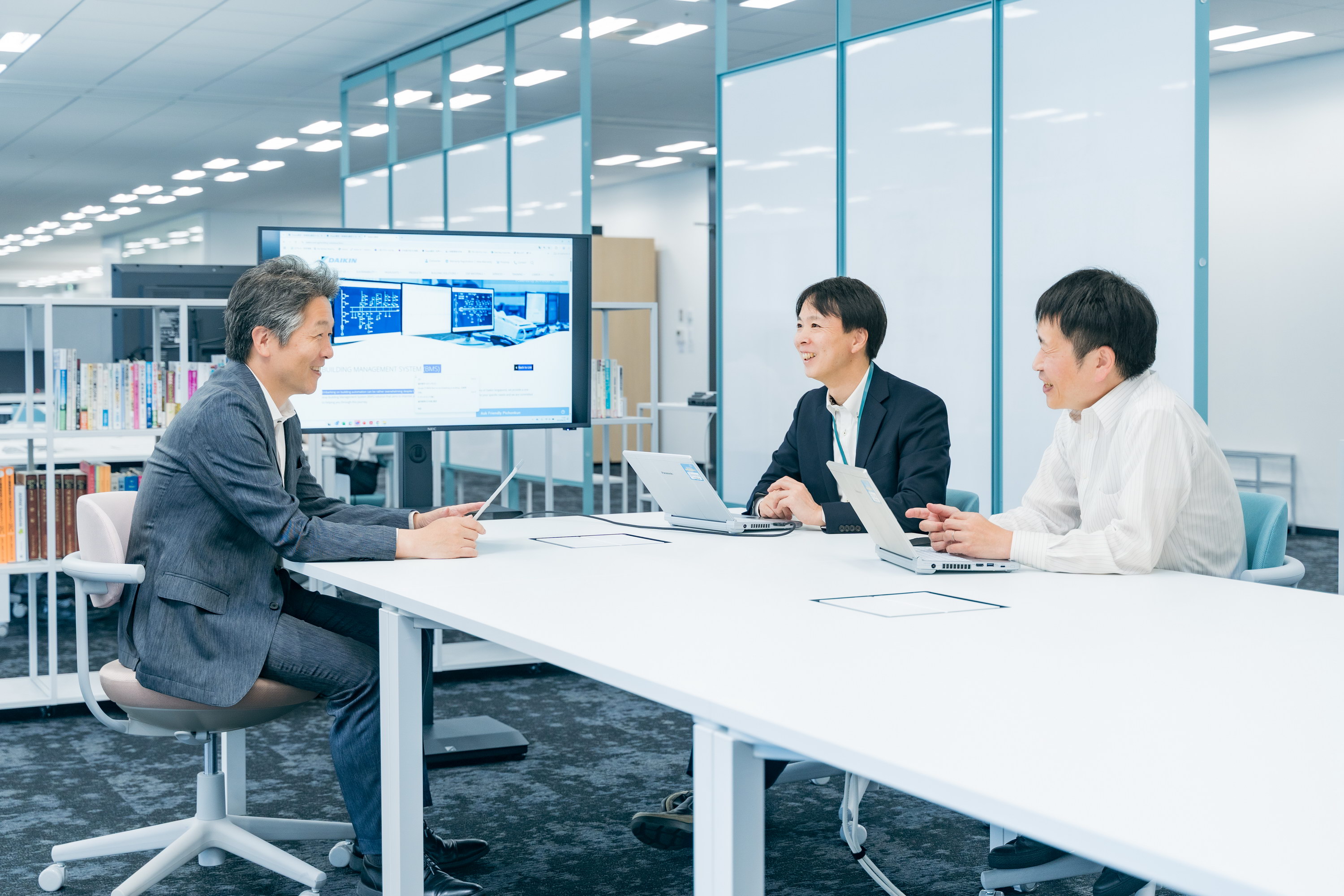 坪内:ダイキンはこれまで空調機器を作って成長してきた会社です。しかし、ただ空調機器(モノ)を作って売るだけでは、お客様に提供できる価値が限定的な範囲に留まってしまいます。そこで、考えたのがBMS※1領域への事業拡大です。当社の空調機器を導入してくださったお客様のビル設備をワンストップで管理できるBMSを開発することで、より大きな価値を持つソリューション(コト)をお客様に提供できると考えました。