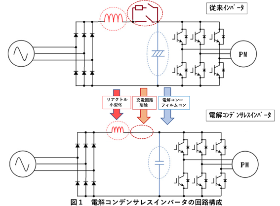 ――インバータの制御回路から電解コンデンサを取ってしまうという大胆な発想は、どうやって生まれたのでしょうか?
