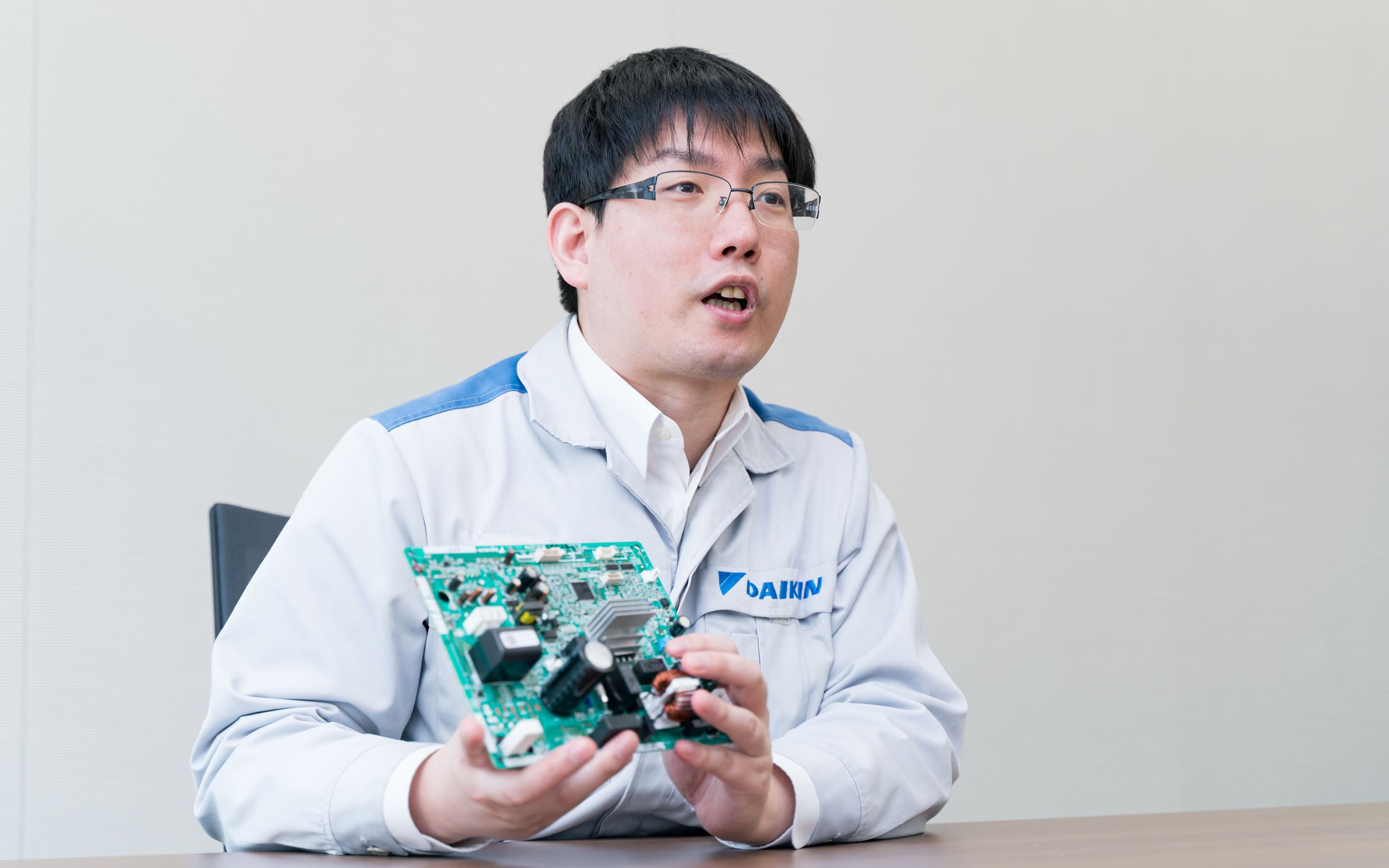 一方、林さんも大学時代からパワーエレクトロニクスの研究をしていた。主に電力会社に関係するようなパワーエレクトロニクス研究をしていたが、ものづくりをしたいとメーカーを志望、大阪出身ということもあってダイキン工業に興味を持ち、2011年に入社した。