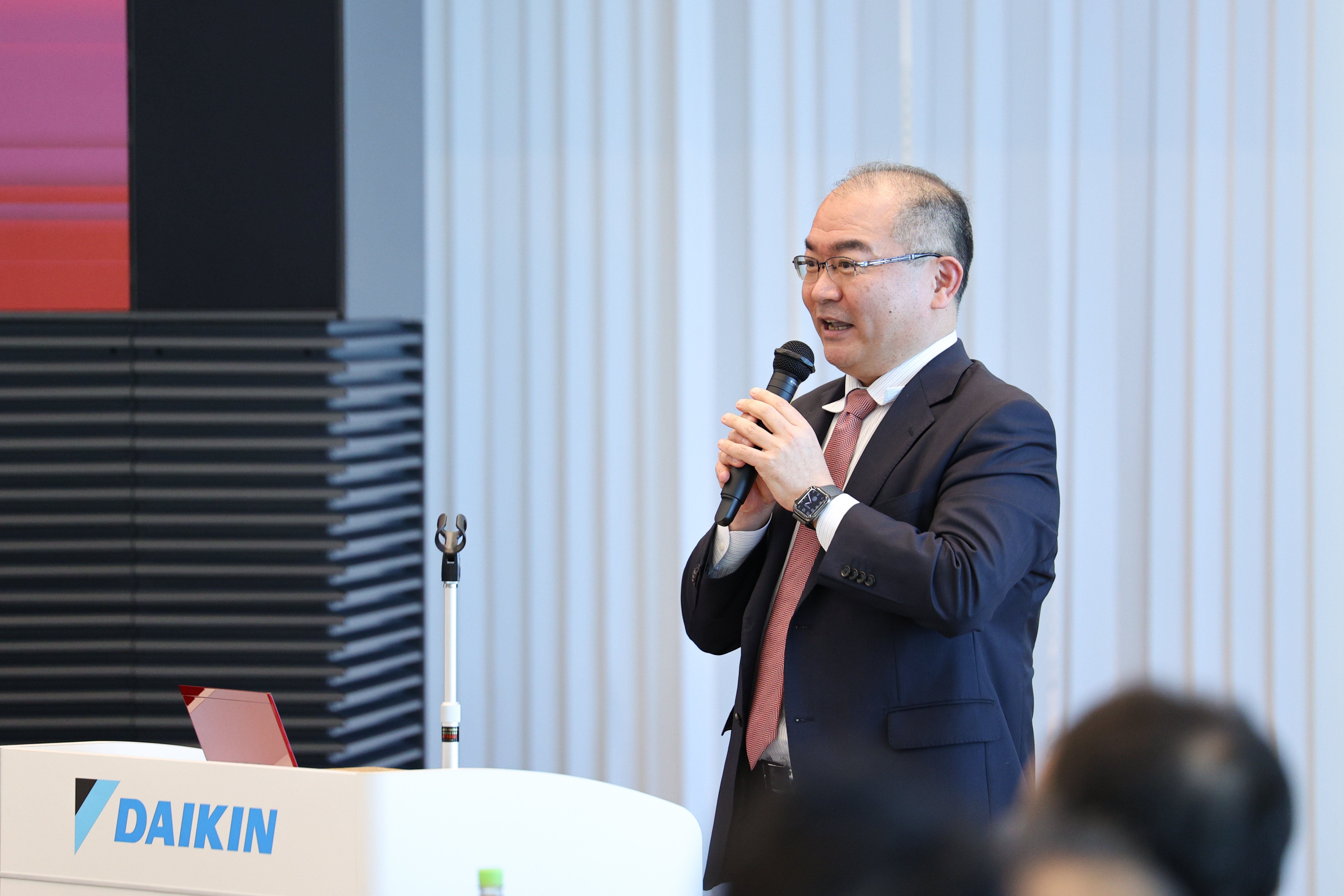 「ヒートポンプは将来を担う有望な産業、日本においても自動車産業に次ぐ一大産業になる。そのコア技術となる圧縮機やモータ、インバータなどの技術は、日本が強みとする技術。欧州では、燃焼暖房からヒートポンプへと産業の中心が日本メーカーや中国メーカーの得意分野に移っていくことが警戒される中、日本が業界の垣根を越えて結束し、切磋琢磨しつつも共に技術力を高めていくことが重要であり、皆様と協創・協業させて頂きたい。」